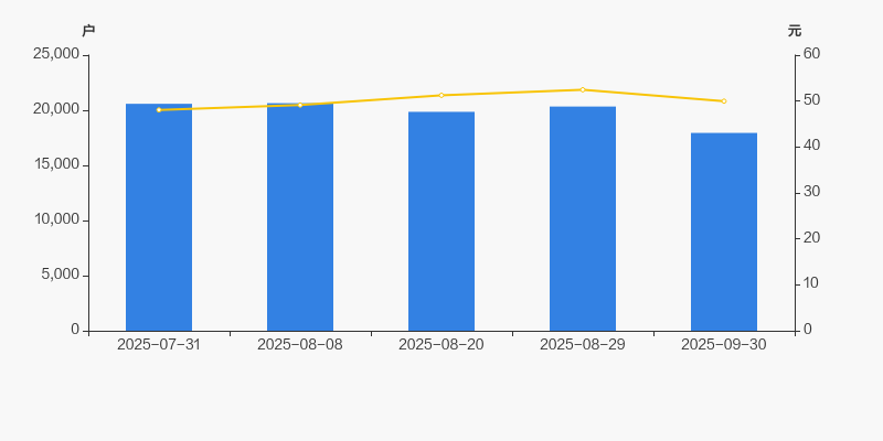 2025年7月31日至今,公司股东户数显著下降,区间跌幅为12.83%。2025年7月31日至2025年9月30日区间股价上涨3.97%。
