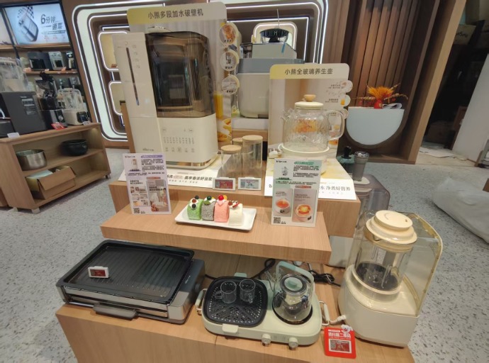 图:深圳南山某家电卖场中小熊电器养生壶专柜。周良成/摄