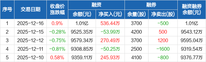 小熊电器:融资净买入536.44万元,融资余额1.01亿元(12-16)