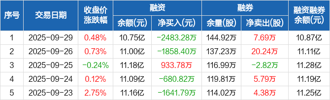苏州银行:融资净偿还2483.28万元,融资余额10.75亿元(09-29)