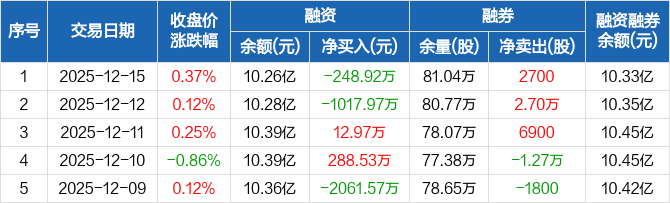 苏州银行:融资净偿还248.92万元,融资余额10.26亿元(12-15)
