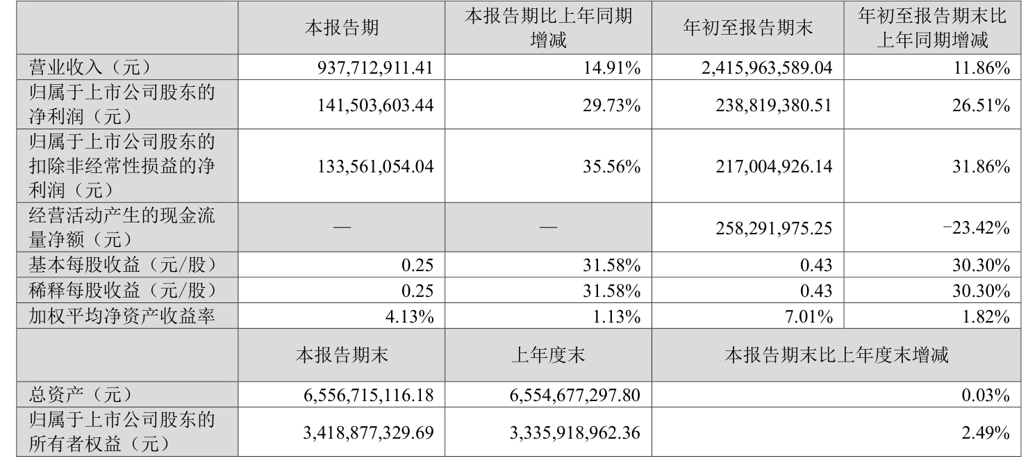 负债重大变化方面,截至2025年三季度末,公司短期借款较上年末减少32.85%,占公司总资产比重下降4.82个百分点;长期借款较上年末增加41.59%,占公司总资产比重上升3.67个百分点;其他应付款(含利息和股利)较上年末减少22.6%,占公司总资产比重下降0.84个百分点;应付职工薪酬较上年末减少23.91%,占公司总资产比重下降0.63个百分点。