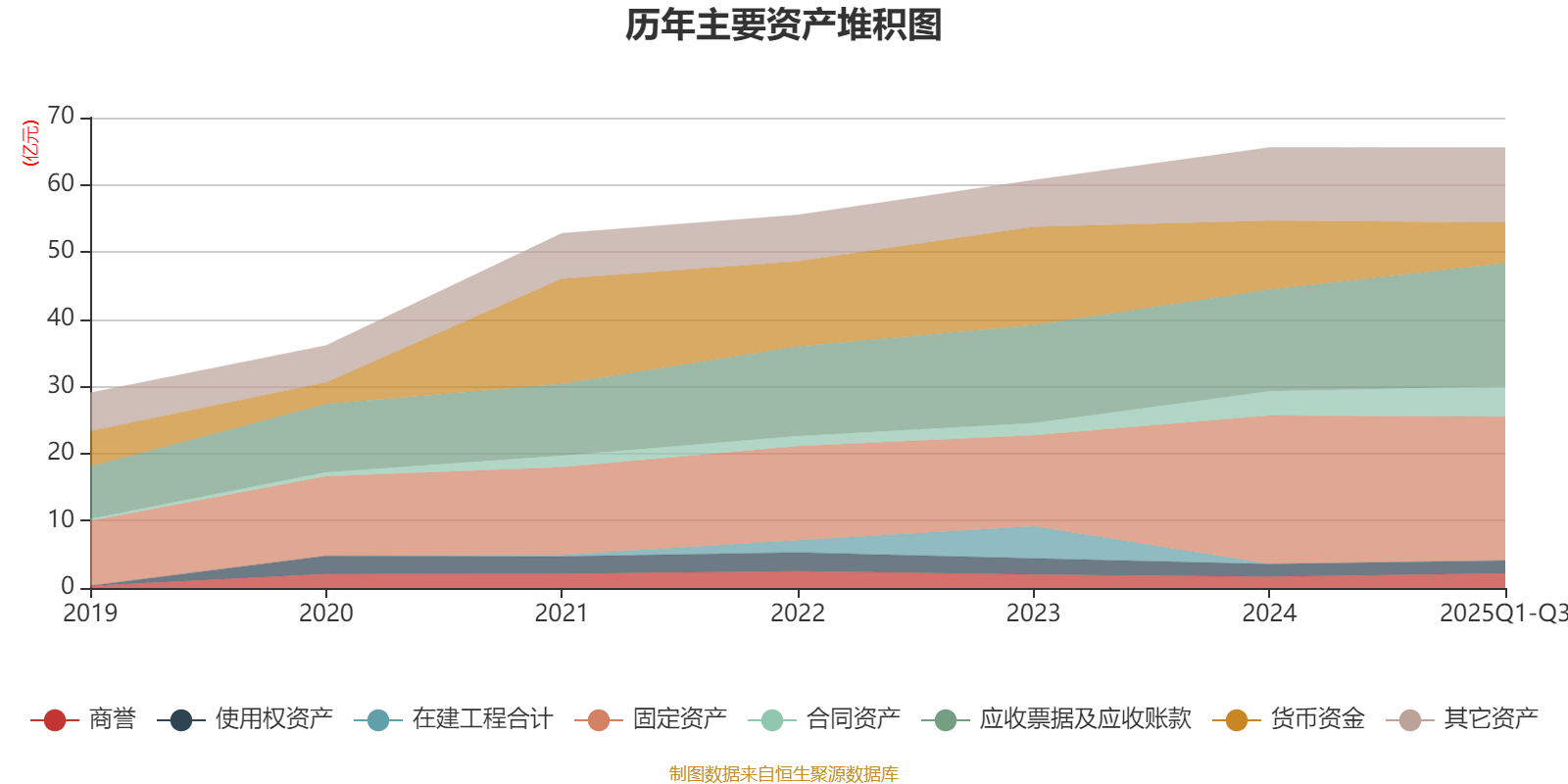 资产重大变化方面,截至2025年三季度末,公司货币资金较上年末减少40.62%,占公司总资产比重下降6.36个百分点;应收票据及应收账款较上年末增加21.28%,占公司总资产比重上升4.9个百分点;其他流动资产较上年末减少46.11%,占公司总资产比重下降1.52个百分点;合同资产较上年末增加24.41%,占公司总资产比重上升1.35个百分点。