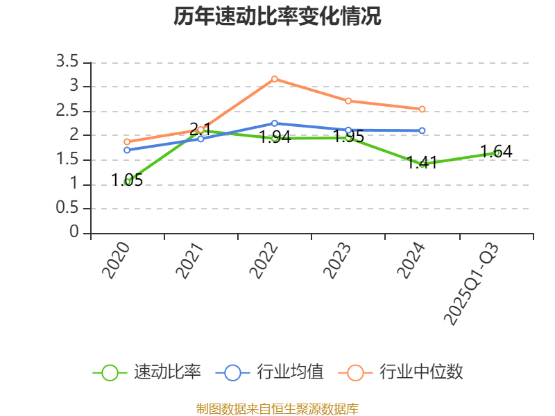 2025年前三季度,公司流动比率为1.68,速动比率为1.64。