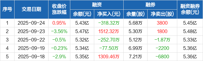 京北方:融资净偿还318.32万元,融资余额5.43亿元(09-24)