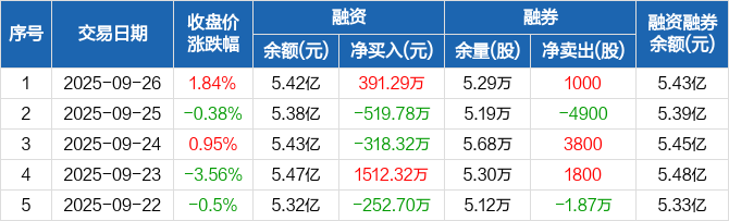 京北方:融资净买入391.29万元,融资余额5.42亿元(09-26)