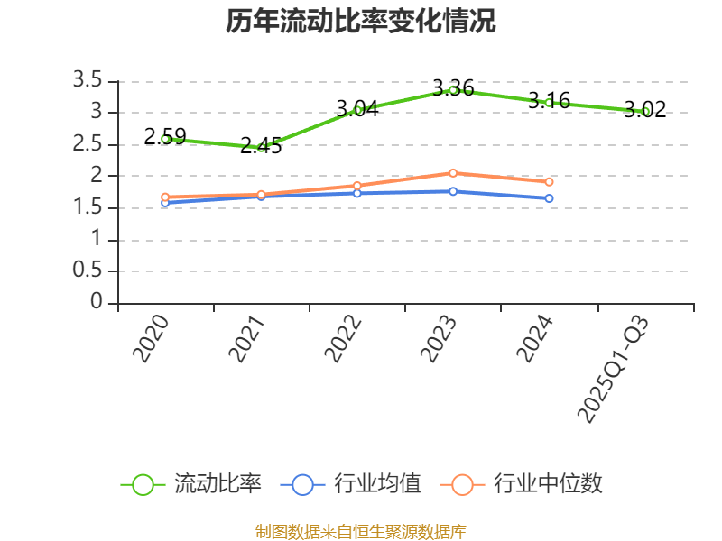 2025年前三季度,公司流动比率为3.02,速动比率为2.97。