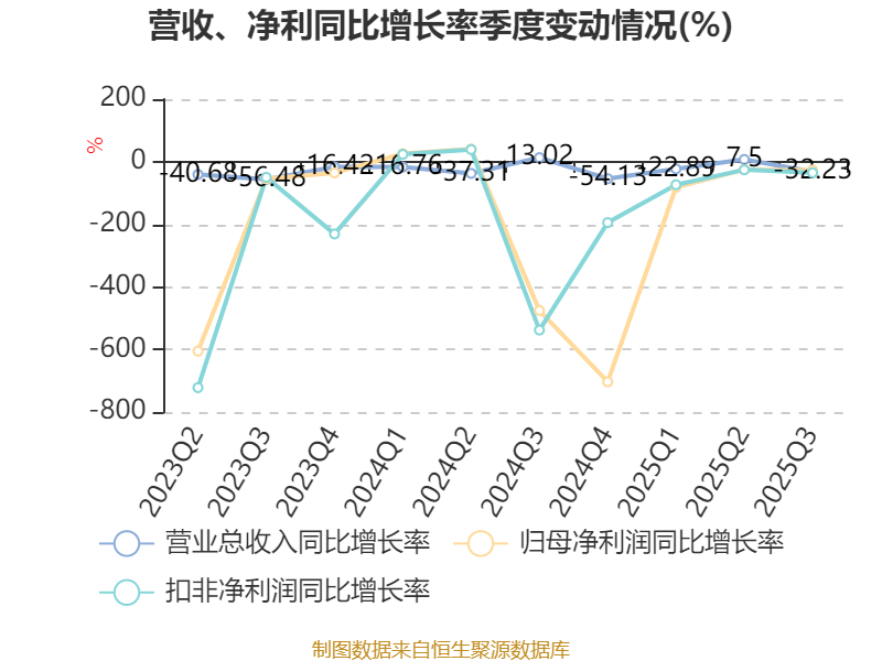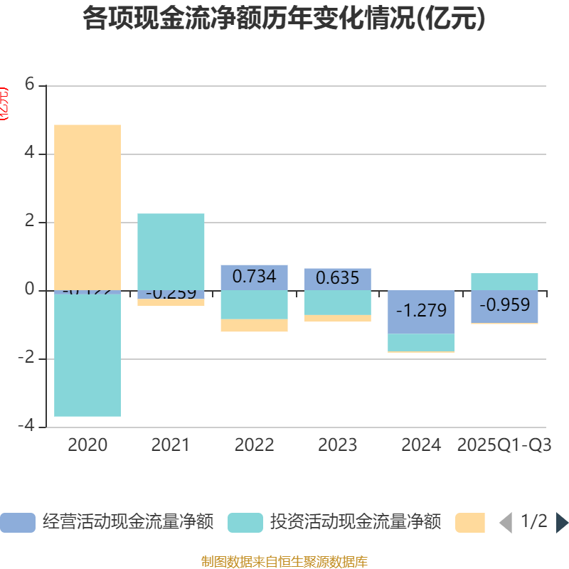2025年前三季度,公司经营活动现金流净额为-9585.31万元,同比减少3132.65万元;筹资活动现金流净额-286.02万元,同比减少21.23万元;投资活动现金流净额4991.85万元,上年同期为-1192.22万元。