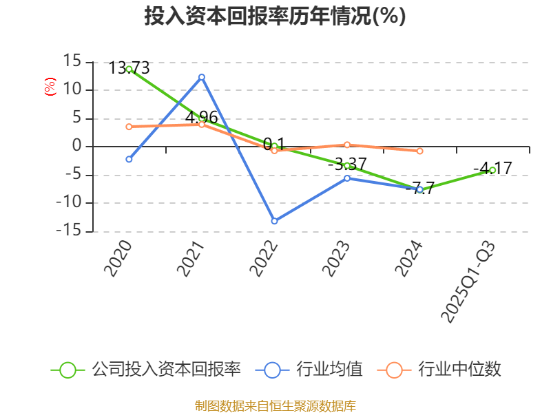 盈利能力方面, 2025年前三季度公司加权平均净资产收益率为-4.87%,同比下降1.72个百分点。公司2025年前三季度投入资本回报率为-4.17%,较上年同期下降0.6个百分点。
