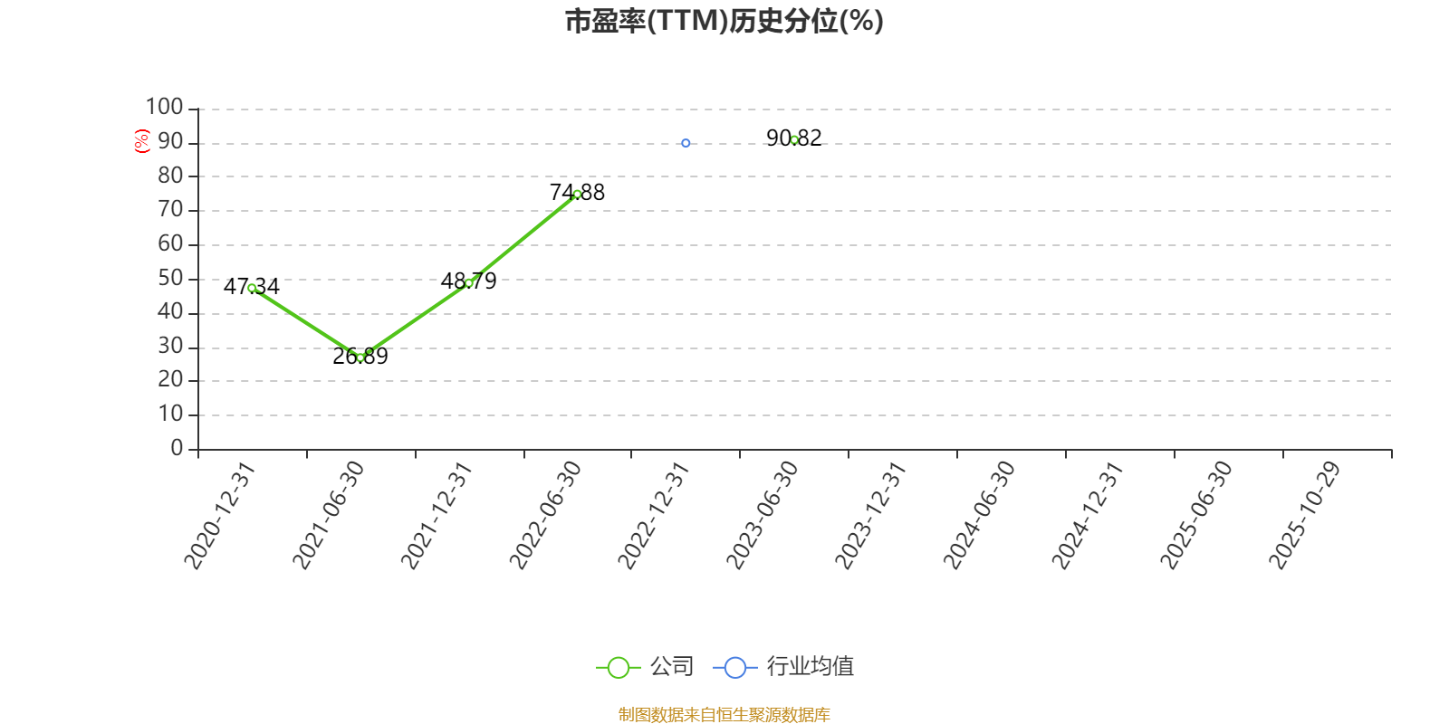 市盈率、市净率为负时,不显示当期分位数,会导致折线图中断。