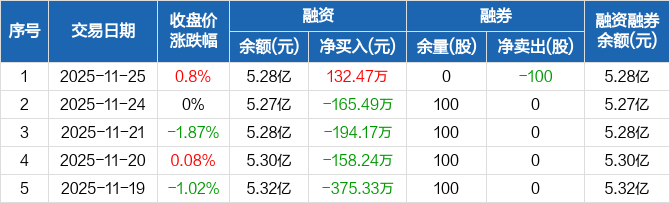 瑞鹄模具:融资净买入132.47万元,融资余额5.28亿元(11-25)