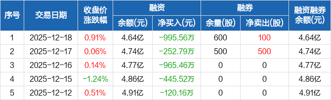 瑞鹄模具:融资余额4.64亿元,创近一年新低(12-18)