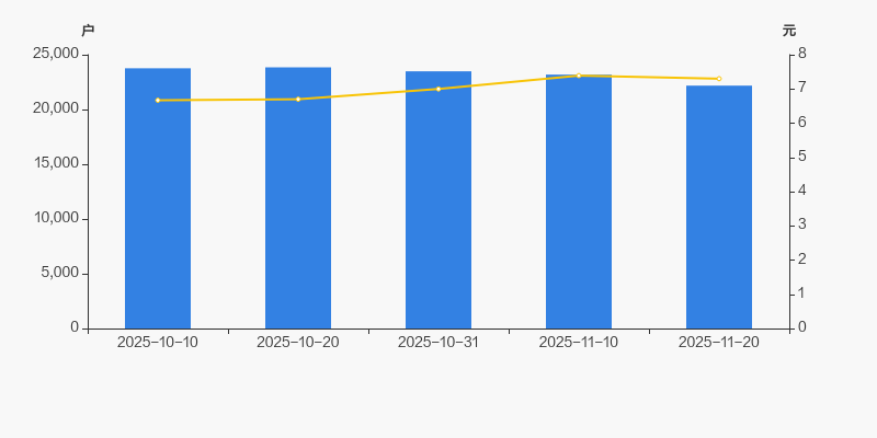 自2025年10月20日以来,公司股东户数连续3期下降,截至目前减幅为7.01%。2025年10月20日至2025年11月20日区间股价上涨8.96%。