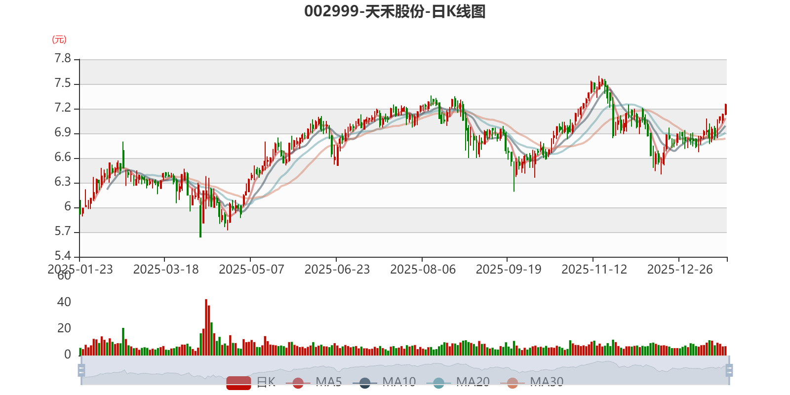 中证智能财讯天禾股份(002999)1月22日晚间披露2025年度业绩预告,预计2025年归母净利润4100万元至6000万元,同比增长84.35%-169.78%;扣非净利润预计3600万元至5300万元,同比增长103.05%-198.93%;基本每股收益0.12元/股-0.17元/股。以1月22日收盘价计算,天禾股份目前市盈率(TTM)约为42倍-61.46倍,市净率(LF)约2.1倍,市销率(TTM)约0.19倍。
