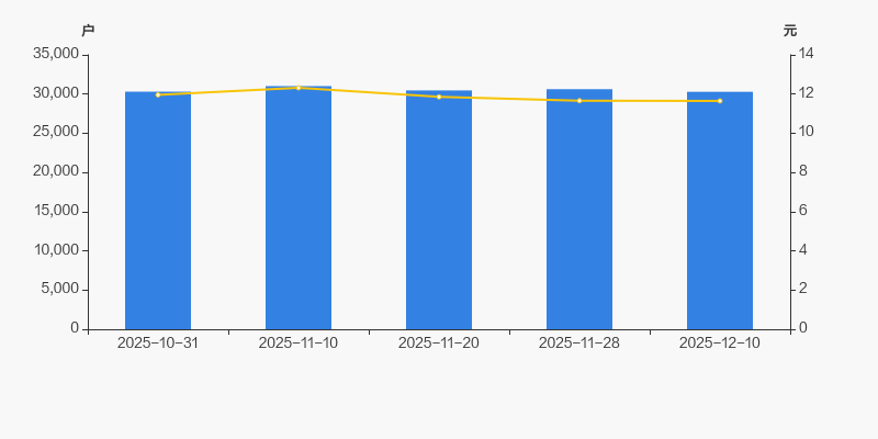 截至2025年12月10日,公司最新总股本为4.51亿股,其中流通股本为3亿股。户均持有流通股数量由上期的9806股上升至9914股,户均流通市值11.55万元。