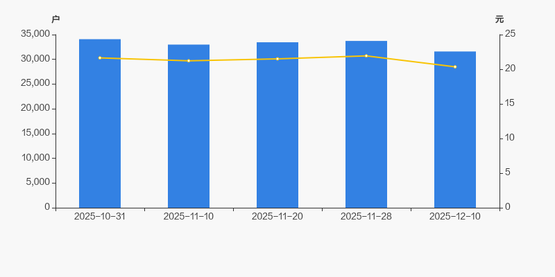 2025年10月31日至今,公司股东户数有所下降,区间跌幅为7.30%。2025年10月31日至2025年12月10日区间股价下降5.96%。