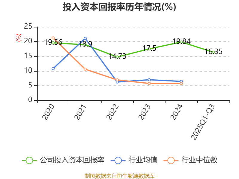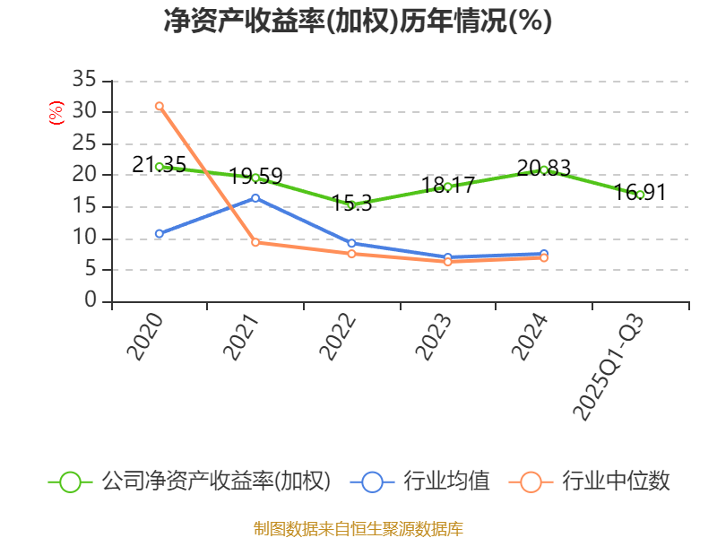 盈利能力方面, 2025年前三季度公司加权平均净资产收益率为16.91%,同比下降0.35个百分点。公司2025年前三季度投入资本回报率为16.35%,较上年同期下降0.48个百分点。