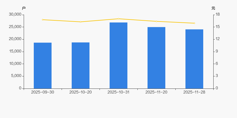 2025年9月30日至今,公司股东户数显著增长,区间涨幅为28.97%。2025年9月30日至2025年11月28日区间股价下降5.06%。