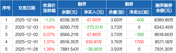 顺控发展:融资净买入47.6万元,融资余额8338.3万元(12-04)