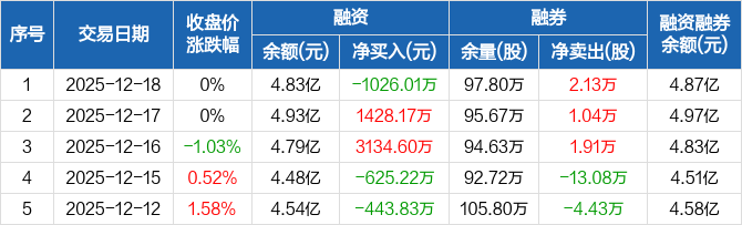 中国广核:融资净偿还1026.01万元,融资余额4.83亿元(12-18)