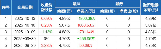 探路者:融资净偿还1800.38万元,融资余额4.89亿元(10-13)