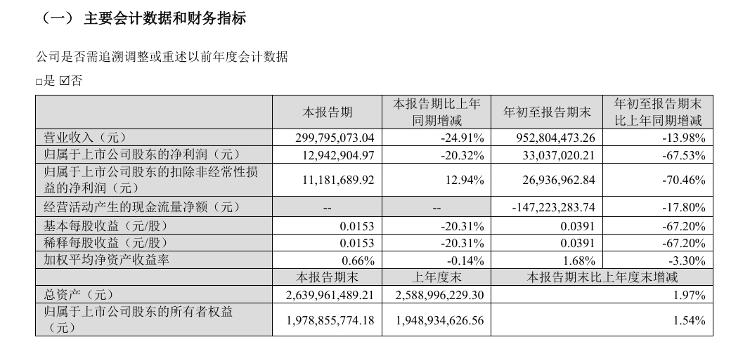 前三季度营收、净利双降