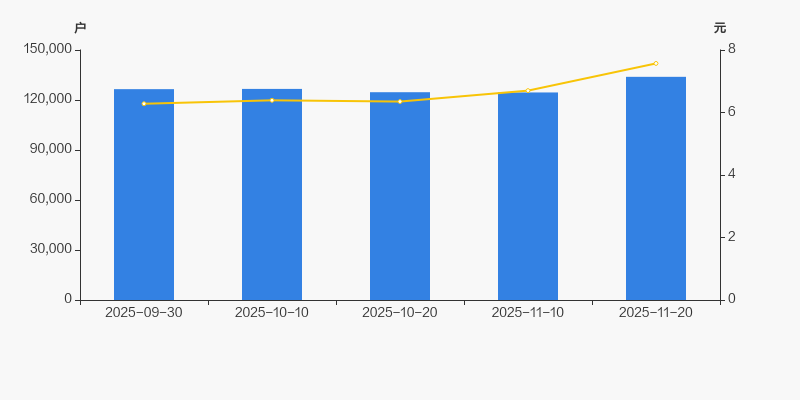 2025年9月30日至今,公司股东户数有所增长,区间涨幅为5.85%。2025年9月30日至2025年11月20日区间股价上涨20.54%。