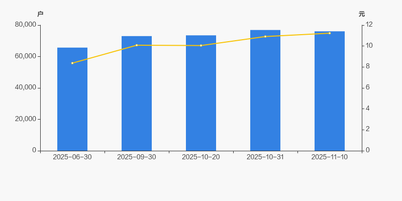 2025年6月30日至今,公司股东户数显著增长,区间涨幅为15.79%。2025年6月30日至2025年11月10日区间股价上涨34.17%。