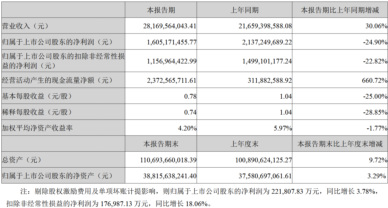 2025年半年报显示,亿纬锂能营收281.7亿元,同比增长30.06%;但净利润却下滑24.9%至16.05亿元。公司解释称,5.7亿元股权激励费用和坏账计提是主要拖累。