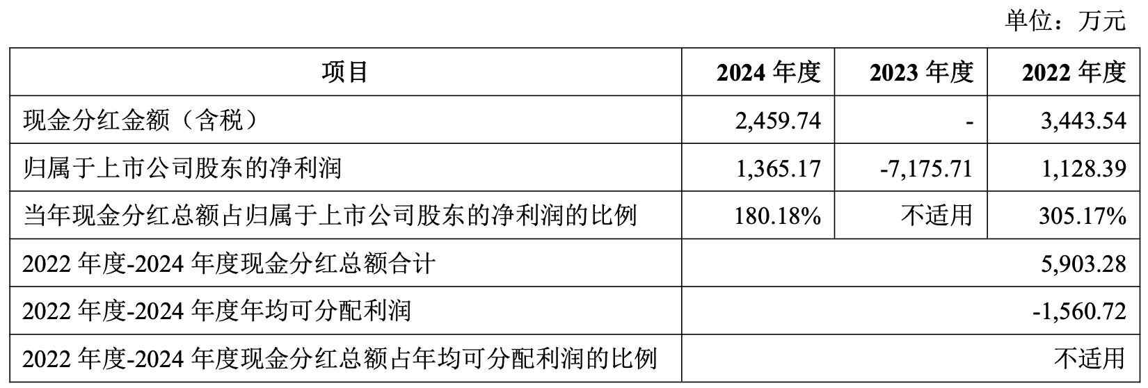 分红方面,最近三年,公司年均可分配利润为-1560.72万元,现金分红总额为5903.28万元。