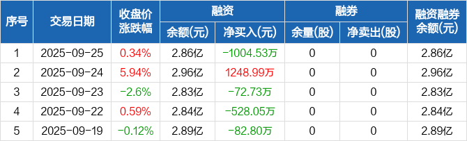 中元股份:融资净偿还1004.53万元,融资余额2.86亿元(09-25)