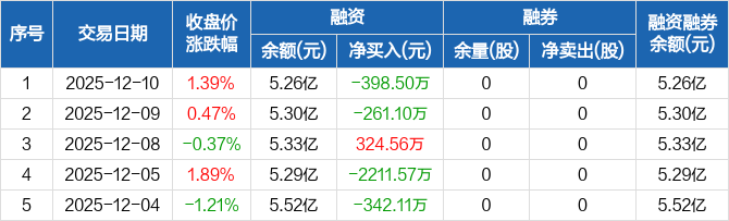 中元股份:融资净偿还398.5万元,融资余额5.26亿元(12-10)