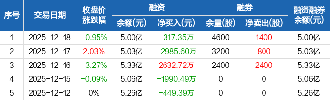中元股份:融资净偿还317.35万元,融资余额5亿元(12-18)