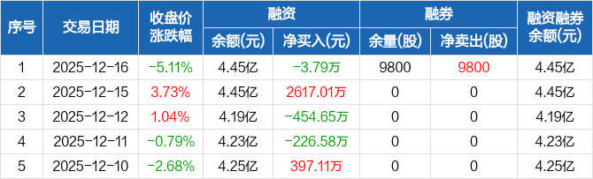 硅宝科技:融资净偿还3.79万元,融资余额4.45亿元(12-16)
