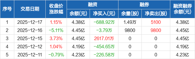 硅宝科技:融资净偿还688.92万元,融资余额4.38亿元(12-17)