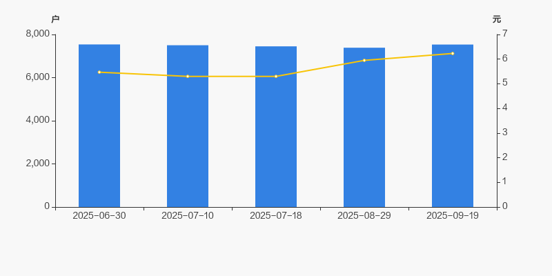 2025年6月30日至今,公司股东户数有所下降,区间跌幅为0.07%。2025年6月30日至2025年9月19日区间股价上涨13.89%。