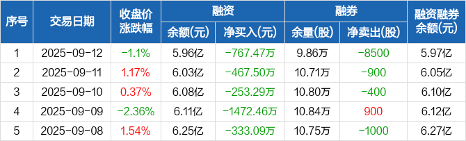 钢研高纳:连续6日融资净偿还累计4212.14万元(09-12)