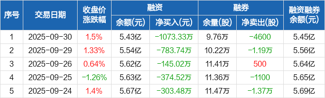 钢研高纳融资融券信息显示,2025年9月30日融资净偿还1073.33万元;融资余额5.43亿元,较前一日下降1.94%。