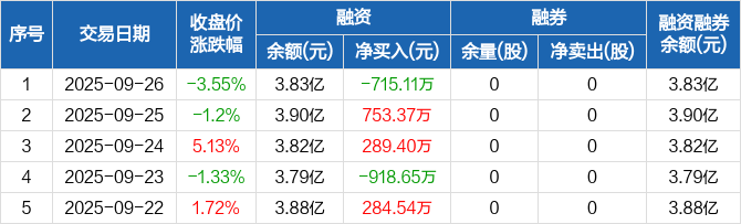 回天新材:融资净偿还715.11万元,融资余额3.83亿元(09-26)