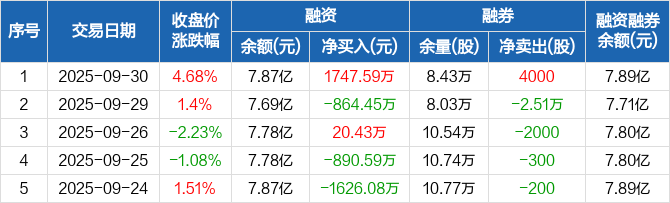 华力创通:融资净买入1747.59万元,融资余额7.87亿元(09-30)