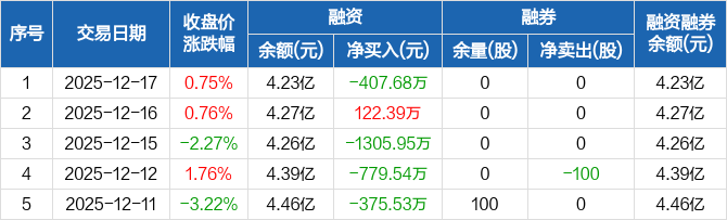 台基股份:融资净偿还407.68万元,融资余额4.23亿元(12-17)