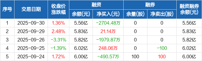 天源迪科:融资净偿还2704.48万元,融资余额5.56亿元(09-30)