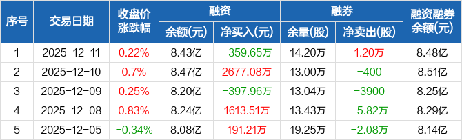 鼎龙股份:融资净偿还359.65万元,融资余额8.43亿元(12-11)