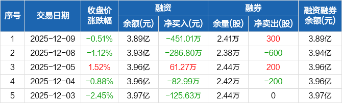 万邦达:融资净偿还451.01万元,融资余额3.89亿元(12-09)