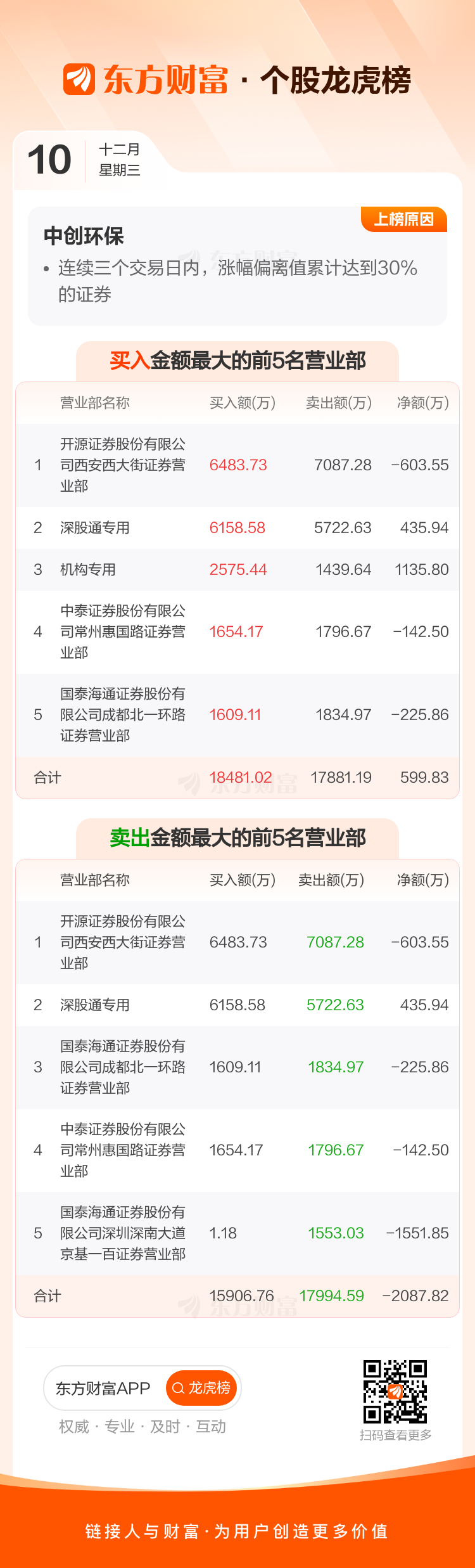 中创环保(300056)龙虎榜数据(12-10)