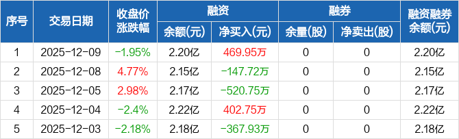 万顺新材:融资净买入469.95万元,融资余额2.2亿元(12-09)