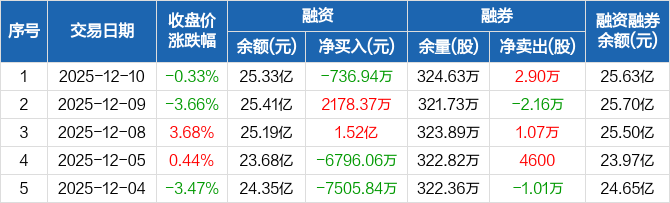 蓝色光标:融资净偿还736.94万元,融资余额25.33亿元(12-10)