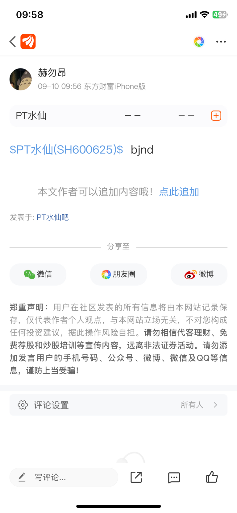 温馨提示: 1.根据《证券法》规定,禁止编造、传播虚假信息或者误导性信息,扰乱证券市场;2.用户在本社区发表的所有资料、言论等仅代表个人观点,与本网站立场无关,不对您构成任何投资建议。用户应基于自己的独立判断,自行决定证券投资并承担相应风险。《东方财富社区管理规定》