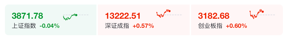 12月12日上午,A股三大股指涨跌不一。截至午间收盘,沪指报3871.78点,跌0.04%,深证成指涨0.57%,创业板指涨0.6%。