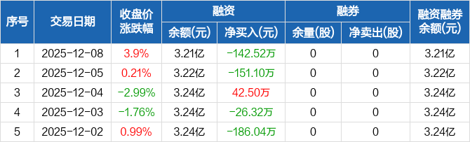 安诺其:融资净偿还142.52万元,融资余额3.21亿元(12-08)